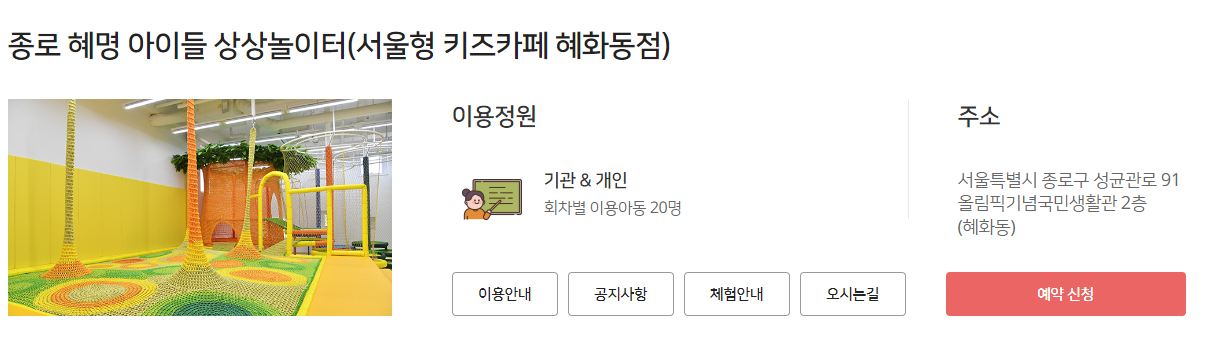 - 1회당 영유아 최대 20명(인원 입력 시 보호자 제외)